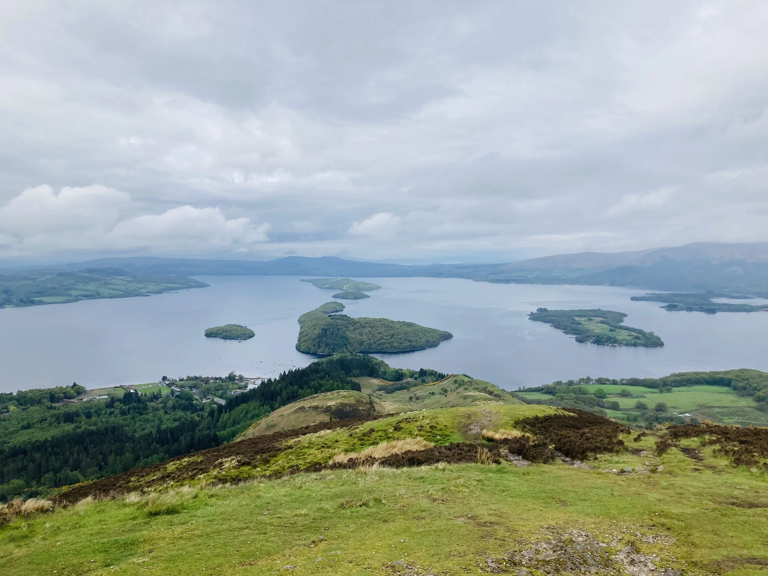 You will then reach moor land, populated with lots of sheeps. A short climb will get you to the top of Conic Hill, where sits the best panorama over Loch Lomond. From there, it will take you about 30 minutes to reach the port, where you will find a café offering breakfast options. From there on, you will stay on the lake most of the next 2 days. 5km later, a small beach can present a nice sitting for lunch, a nap and a short bath should the weather allow.